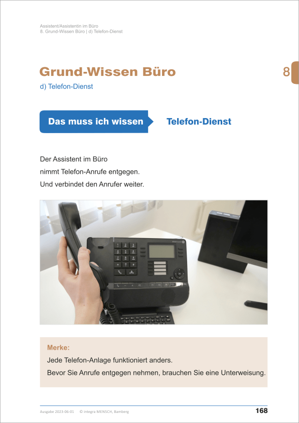 Der Lehrgang „Assistent/Assitentin im Büro“ eignet sich für Menschen mit Behinderung, die zum Beispiel in einem Büro in einer Behörde, einem Handwerks- oder Industriebetrieb oder im Einzel- und Großhandel arbeiten.