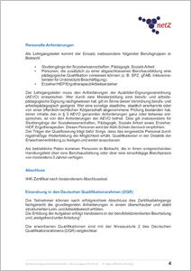 Der Zertifikatslehrgang dauert 12 Monate und endet mit einem lehrgangsinternen Testverfahren. Das Bestehen des lehrgangsinternen Testverfahrens und eine regelmäßige Teilnahme (mind. 80 Prozent) sind Voraussetzung für die Vergabe des IHK-Zertifikates.